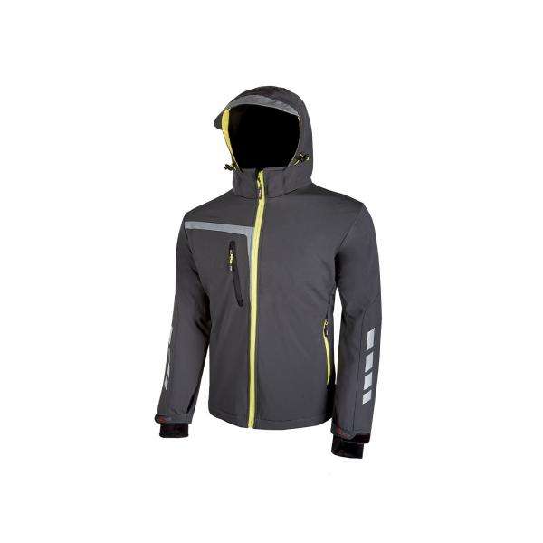 เสื้อแจ็กเก็ตผ้ายืดสีเทายางมะตอยเสื้อผ้านิรภัย U-POWER ด่วนสะท้อนแสง
