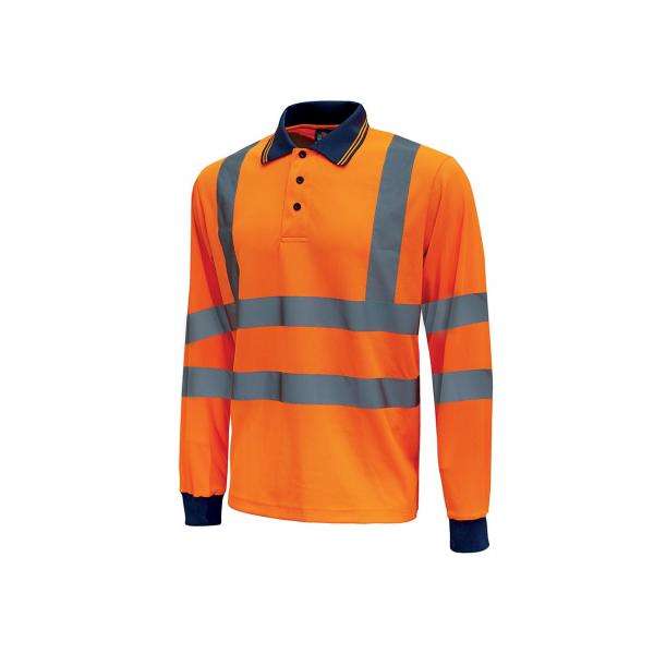 เสื้อโปโลแขนยาวสีส้มฟลูโอสะท้อนแสงสำหรับ U-POWER (แพ็คหลายชิ้น)