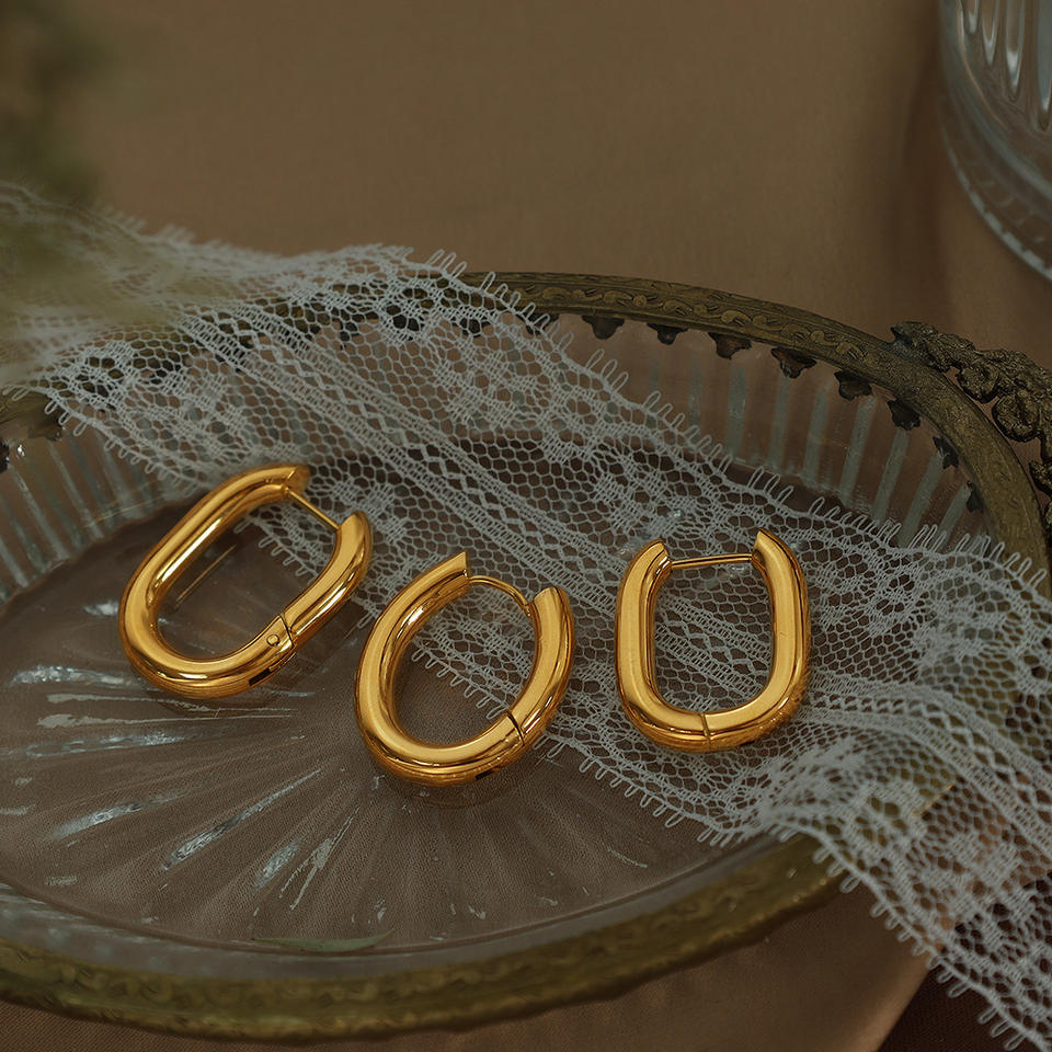 ต่างหูรูปตัวยู ชุบทอง ไทเทเนียมสตีล เครื่องประดับแฟชั่นทรงเรขาคณิตสำหรับผู้หญิง สวมใส่ได้ทุกวัน