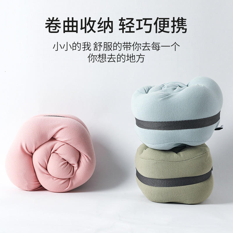 หมอนรองคอเมมโมรี่โฟมรูปตัวยู หมอนเดินทางพกพา สีพื้น ฟ้า ชมพู เขียว เบจ สำหรับพักผ่อนในออฟฟิศ