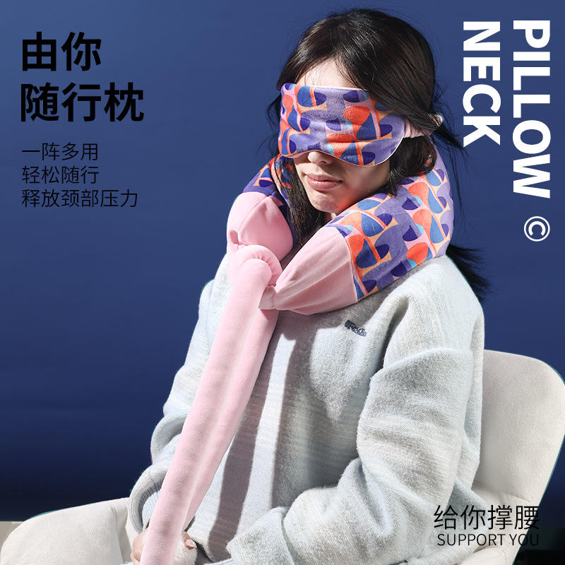 หมอนรองคอรูปตัว U แบบพกพา หมอนรองคอเม็ดโฟม สำหรับใช้ในรถยนต์ เครื่องบิน สีขาว ชมพู ฟ้า ดำ วัสดุโพลีเอสเตอร์