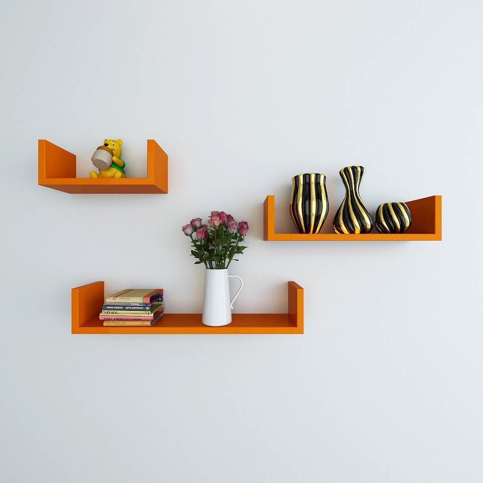 ชั้นวางของ3ชั้นแบบลอยน้ำรูปตัวยูพร้อมส่งจากอินเดียชุด3ชิ้นสำหรับเก็บของในครัวทำด้วยมือวัสดุไม้และทองเหลือง