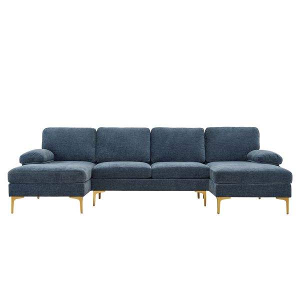 เฟอร์นิเจอร์ห้องนั่งเล่นโซฟาสีฟ้าเทาแบบแยกส่วน4ที่นั่งรูปตัวยู