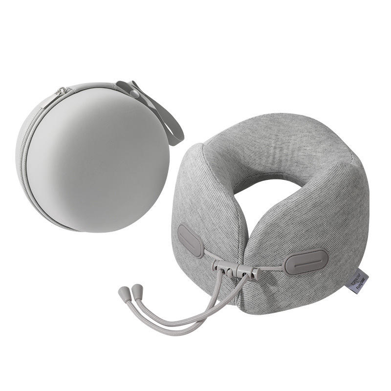 หมอนรองคอเมมโมรี่โฟมรูปตัวยู สำหรับเดินทางและสำนักงาน พร้อมสติกเกอร์โลโก้ สีเทา โพลีเอสเตอร์