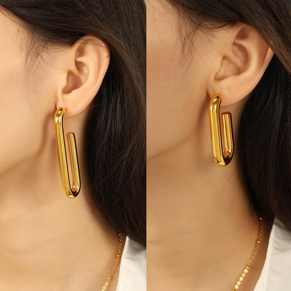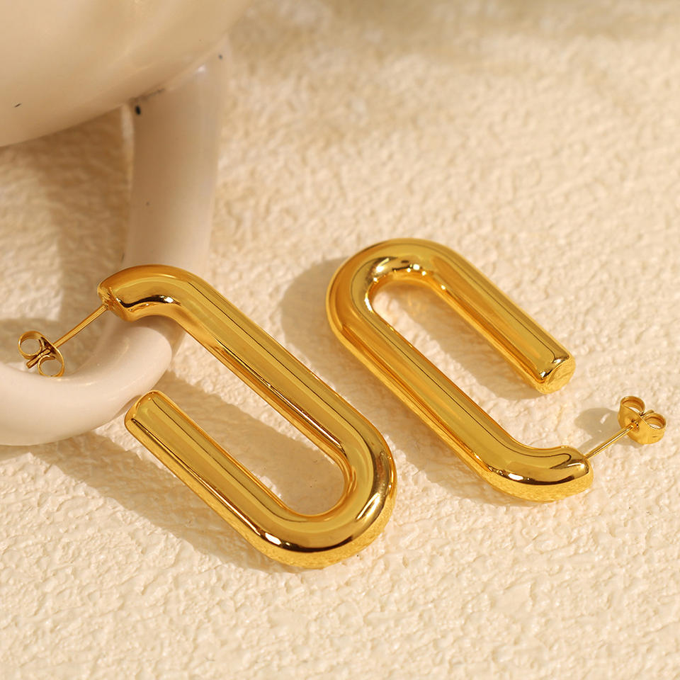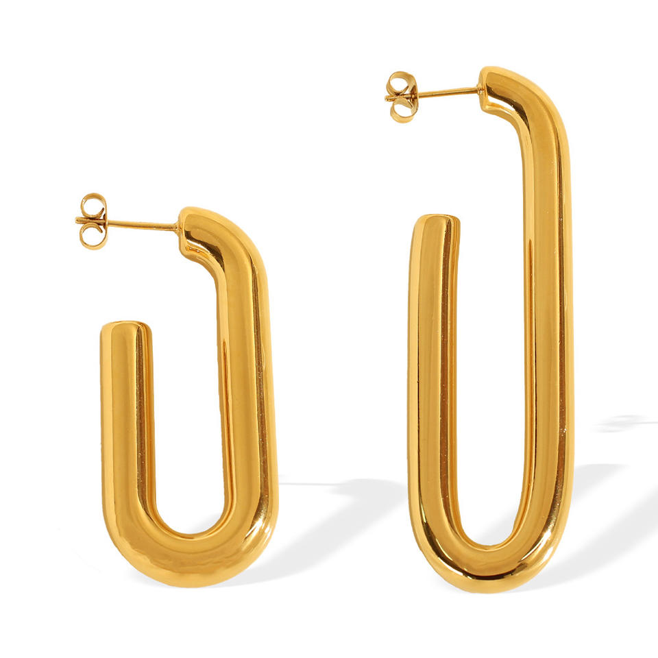 ต่างหูรูปตัวยู ชุบทอง 18K สแตนเลสสตีล สำหรับผู้หญิง เครื่องประดับสำหรับงานปาร์ตี้