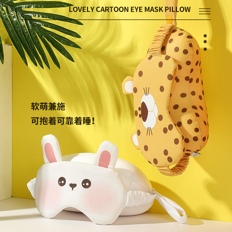 หมอนรองคอรูปตัวยูพร้อมหน้ากากปิดตา ลายกระต่าย 28x26x14 ซม. สำหรับผู้ใหญ่ หมอนรองคอแบบพกพา