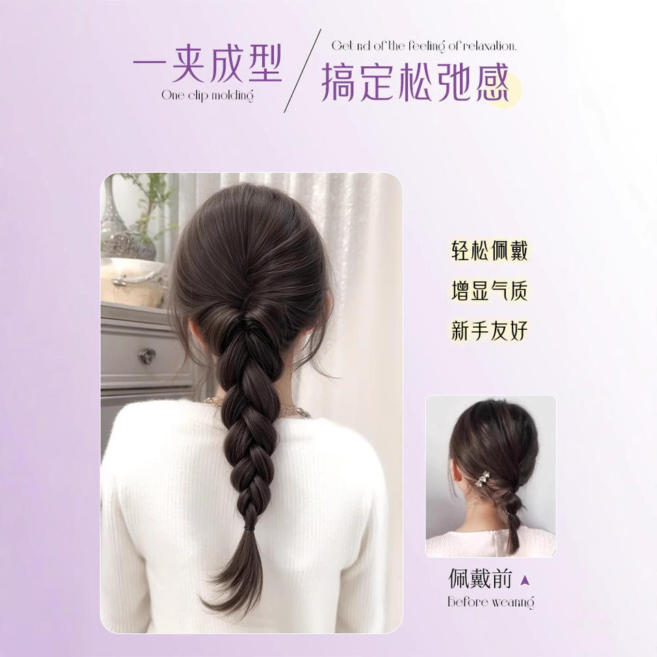 ทรงผมถักเปียอ่อนโยน [สีดำธรรมชาติ] พร้อมยางรัดผม