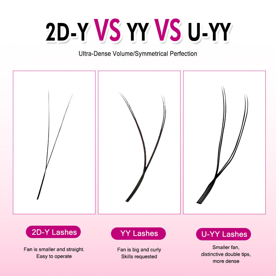 U-shaped Eyelash Extension Easy to Apply 3D Volume False Lash Natural Wispy UYY Shape Faux Mink Eyelashes for Makeup Custom Lash