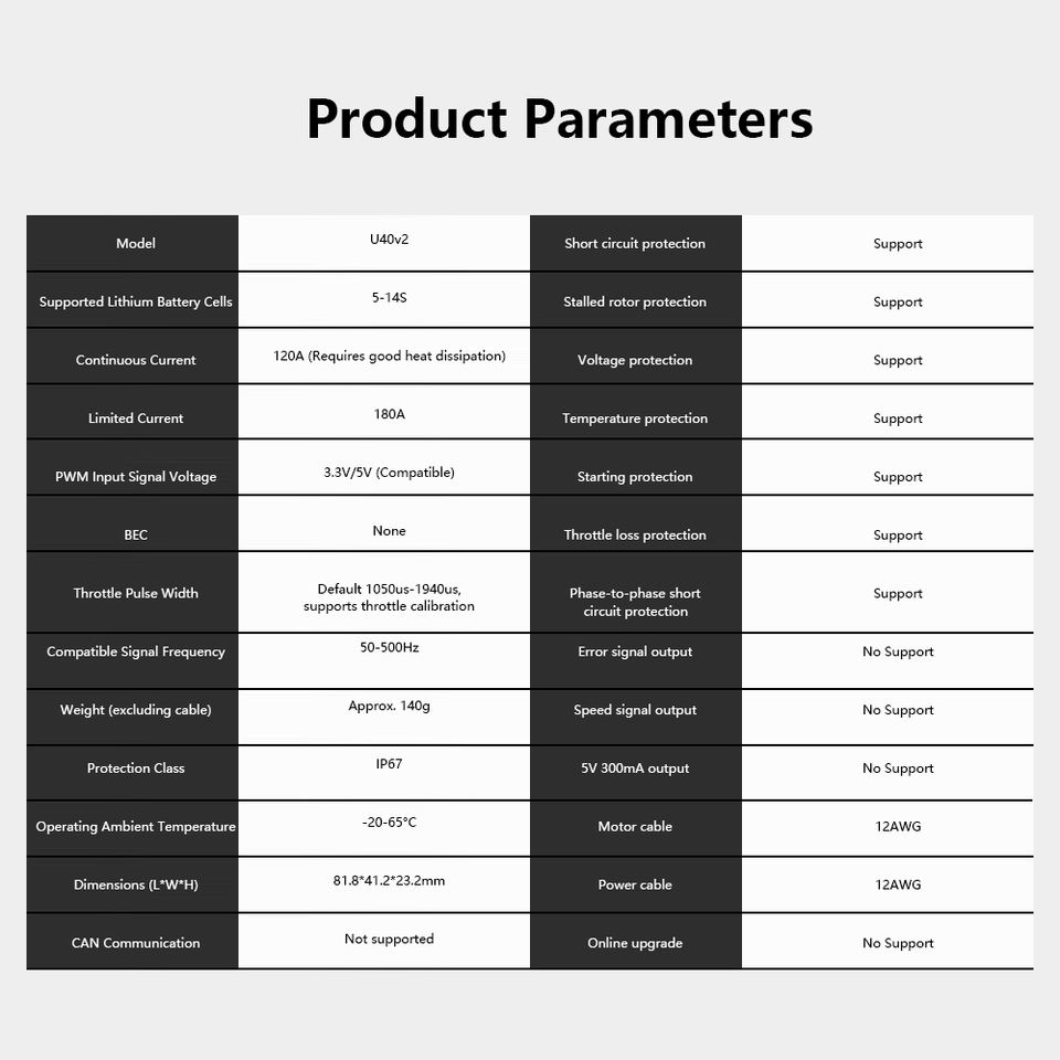 U120ควบคุมความเร็ว5 ~ 14S 120A 140g กันน้ำได้เร็วขึ้นตัวควบคุม ESC มอเตอร์ไร้แปรงถ่านตัวควบคุมความเร็วอิเล็กทรอนิกส์สำหรับโดรนเกษตร