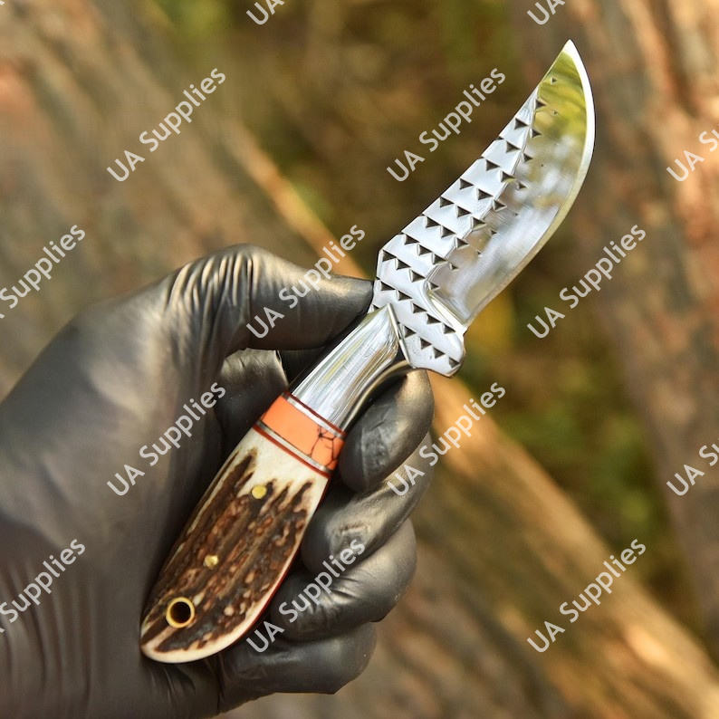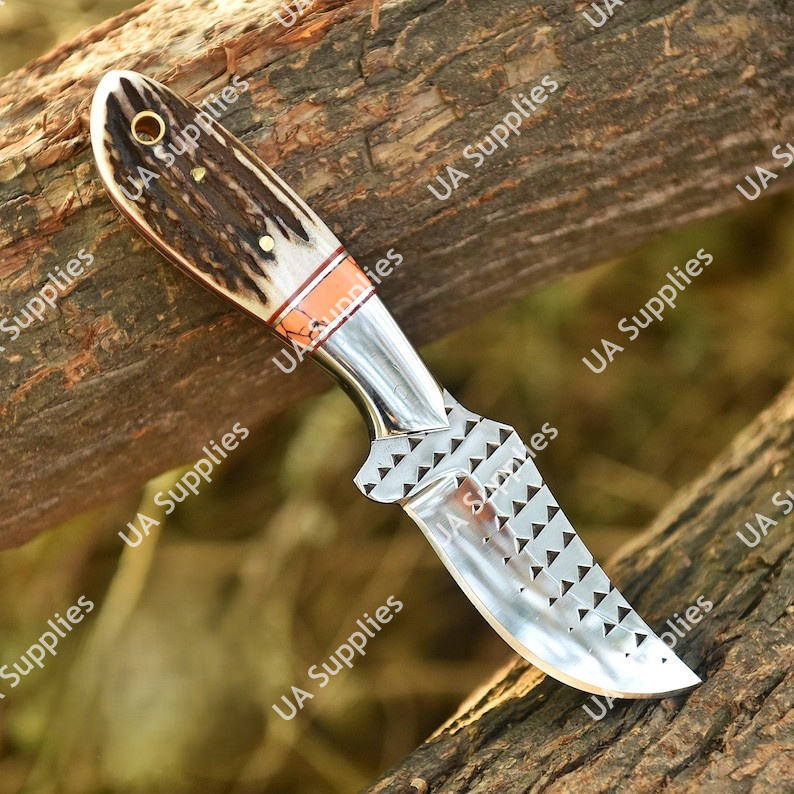 UA Supplies มีดทำมือ DIY OEM สำหรับงานตัดแต่งกีบม้า เหล็กกล้าอุตสาหกรรม สำหรับกิจกรรมกลางแจ้ง ตั้งแคมป์ เอาตัวรอด ล่าสัตว์ มีดสกินเนอร์ ด้ามทำจากเขาสัตว์