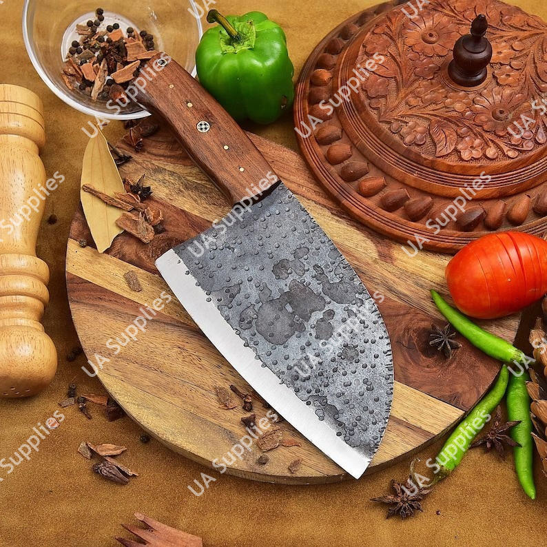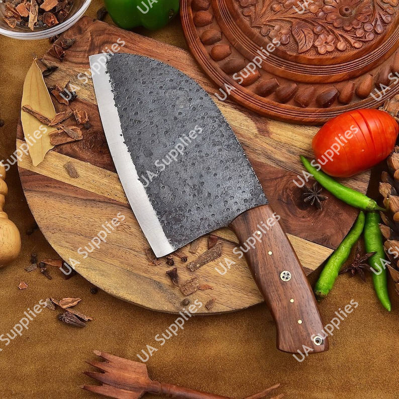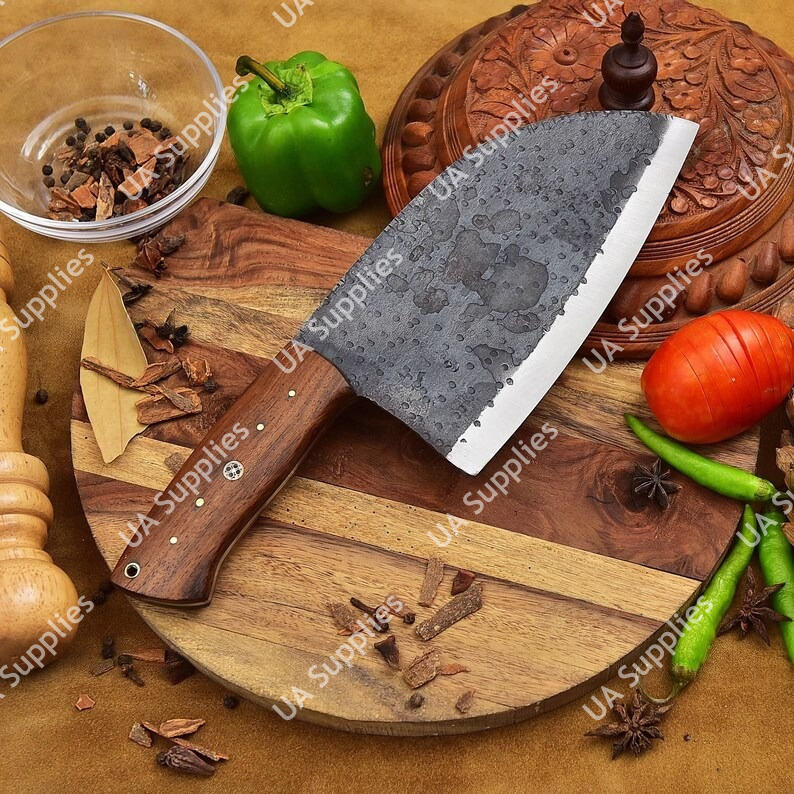 มีดสับเซอร์เบียเหล็กกล้าคาร์บอนคุณภาพสูง ตีขึ้นรูปด้วยมือ ด้ามไม้พะยูงธรรมชาติ ดีไซน์วินเทจ รับผลิตแบบ OEM/ODM ขายส่ง
