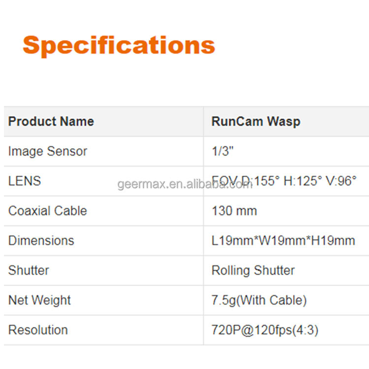 720P 120fps Camera for RunCam Link Waspหมายเลขรุ่น