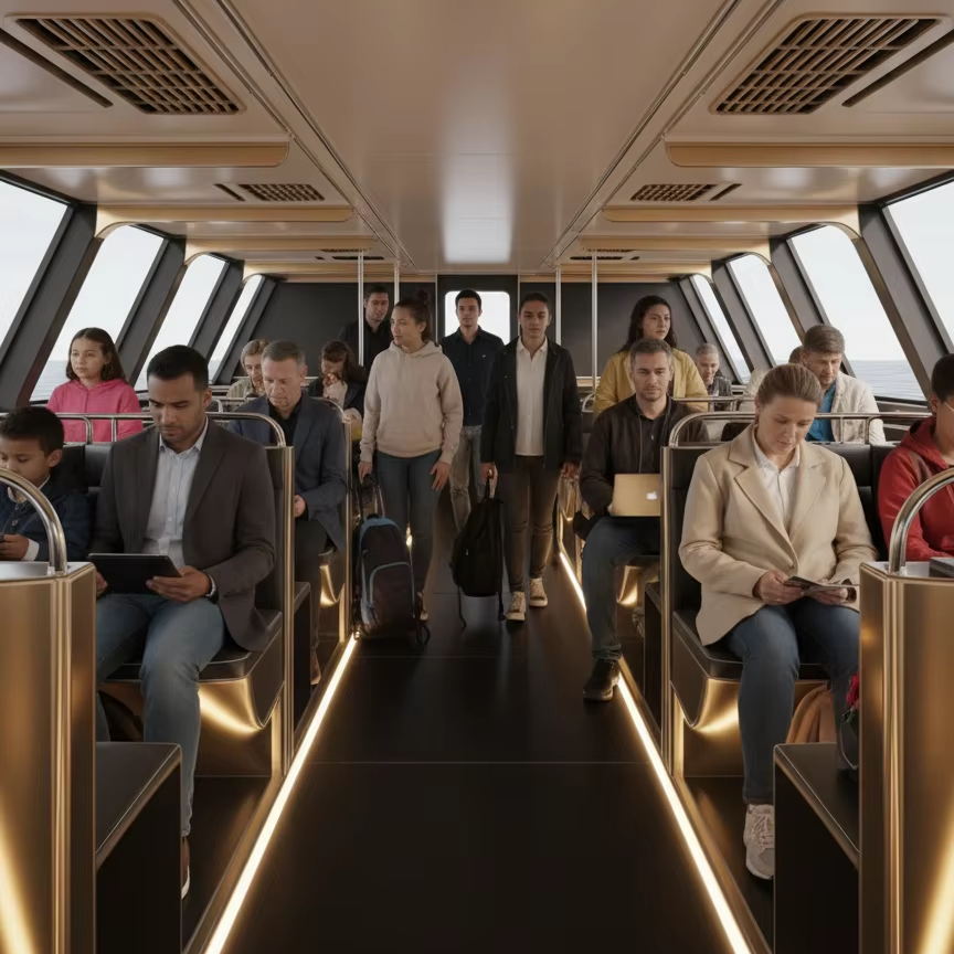 เรือยอชท์สำหรับการเดินทางทางทะเล UBI 18100 ผลิตจากอะลูมิเนียมอัลลอยด์เกรดสำหรับงานทางทะเล ขนาด 11.8 เมตร บรรทุกผู้โดยสารได้ 100 คน พร้อมเครื่องยนต์ในตัว