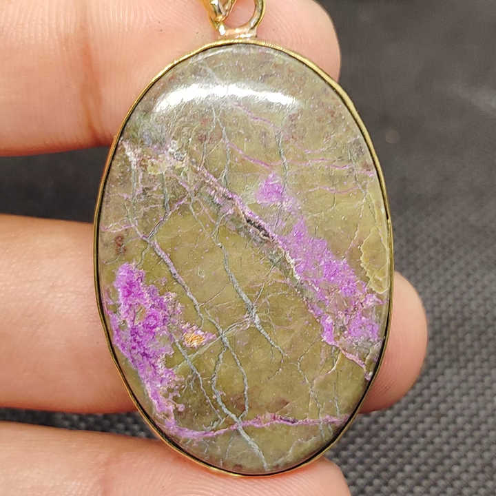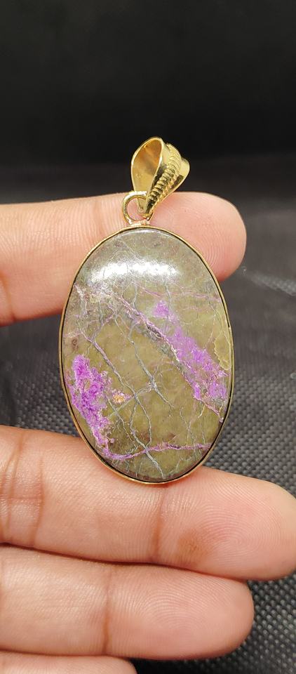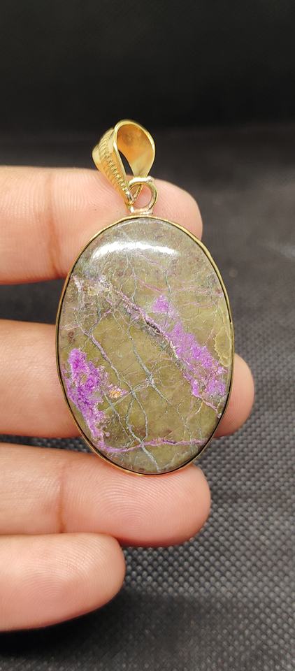 จี้ทองเหลืองทำมือ UDGEMS พลอยเพอร์เพอร์ไรต์ธรรมชาติทรงหลังเบี้ยสีม่วงและเขียว ขนาด 5-8 มม. แบบคละขนาด