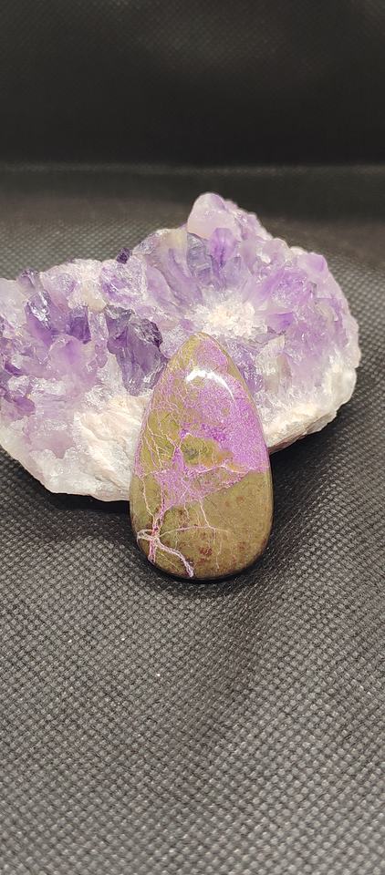 อัญมณี UDGEMS คุณภาพสูง พลอยสีม่วงธรรมชาติ พูร์เพอร์ไรต์ รูปทรงหลังเบี้ย ขนาดต่างๆ สำหรับทำจี้ แหวน สร้อยคอ เครื่องประดับ