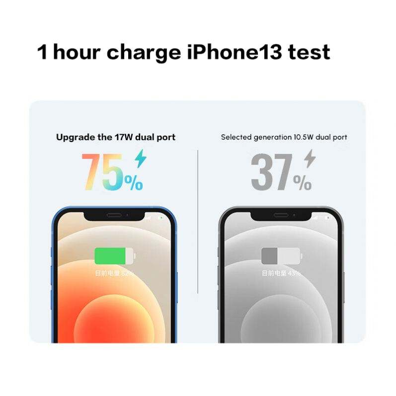 Ugreen ที่ชาร์จ USB แบบพับได้, ที่ชาร์จ USB พอร์ตคู่ขนาดกะทัดรัดชาร์จเร็ว17W