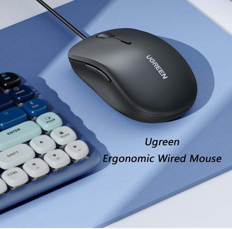 Ugreen เมาส์มีสายเงียบปรับ DPI เมาส์ USB แบบมีสายปรับได้ตามหลักสรีรศาสตร์สำหรับคอมพิวเตอร์แล็ปท็อปมือขวาใช้ได้กับ2025ผู้ขายที่ดีที่สุด
