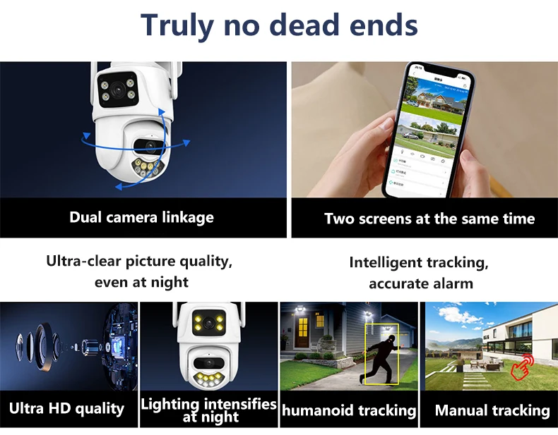 มนุษย์การติดตามการเคลื่อนไหว, ในตอนกลางคืน, การตรวจจับการเคลื่อนไหว, กันน้ำ / ฝนและแดด, Built-in ไซเรน, PAN-TILT, 2-Way Audioคุณสมบัติพิเศษ