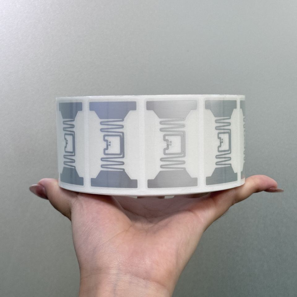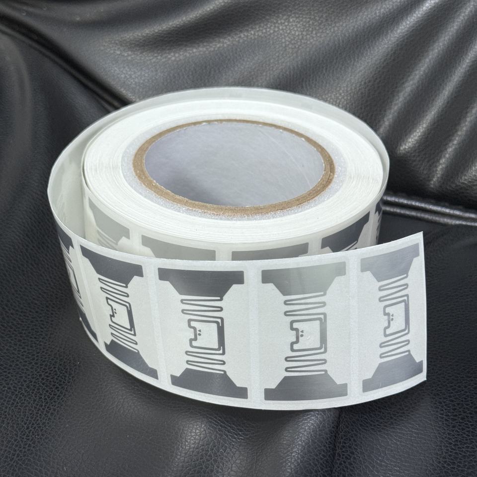 ระบบป้องกันการโจรกรรม UHF 860-960MHz EAS ขนาด 53x33 มม. รูปทรงสี่เหลี่ยมผืนผ้า สีเงิน แบบม้วน ชิปโค้ดปรับแต่งได้ ระบบ RFID สติ๊กเกอร์แบบนิ่ม