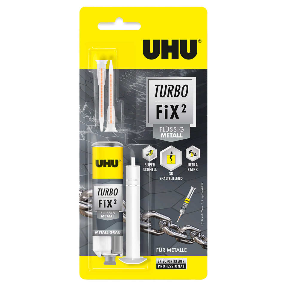UHU Turbo Fix² Liquid Metal 2-Component Instant Adhesive in 10g Double Chamber Syringe
