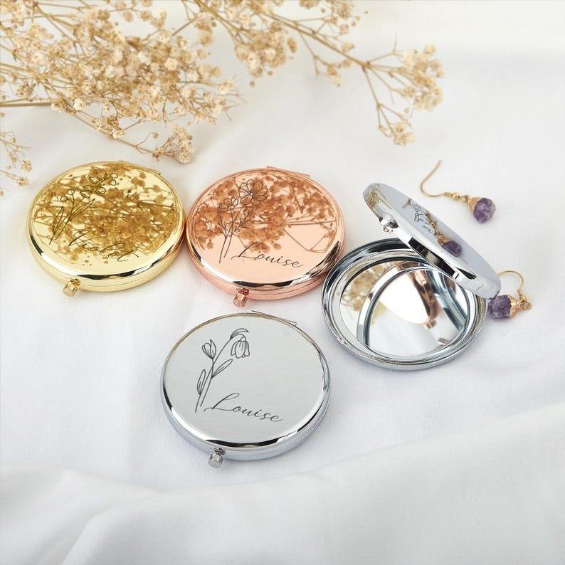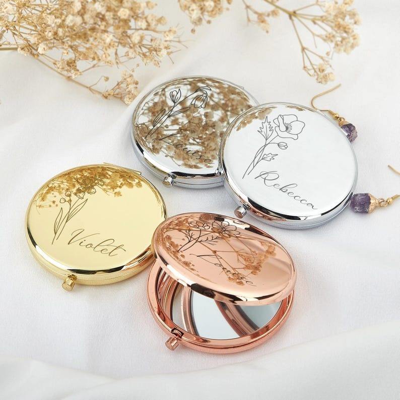 กระจกแต่งหน้าพกพาแบบพับได้ รุ่นคลาสสิค ดีไซน์สีทอง ผลิตจากโลหะ ยี่ห้อ UIONEN รุ่น 0230 สำหรับสำนักงาน สามารถปรับแต่งได้ด้วยเทคนิคการพิมพ์ลาย