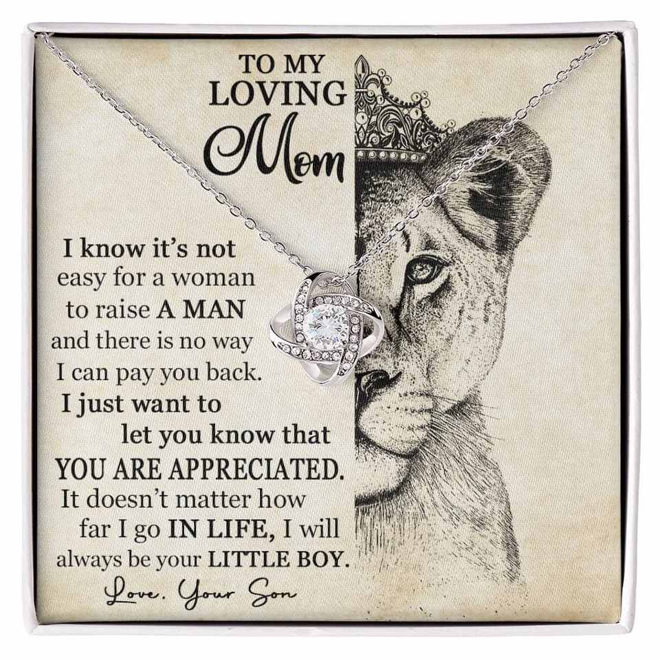 สร้อยคอ UIONEN Lion Queen Mom Copper Classic Casting Love Knot พร้อมการ์ดข้อความส่วนตัว งานฝีมือ DIY ของขวัญวันแม่จากลูกชาย