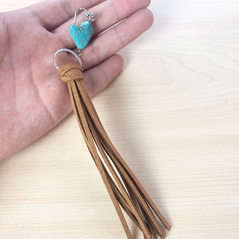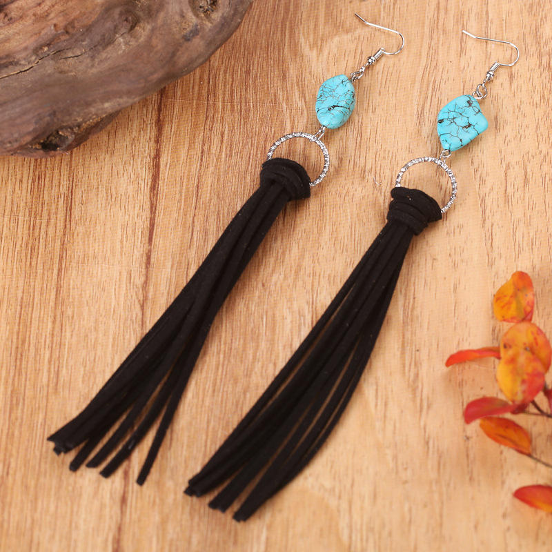 ต่างหูแบบหนีบหนังสไตล์เรขาคณิตประดับพู่ยาวสีเขียวขุ่นสำหรับผู้หญิงจาก UIONEN