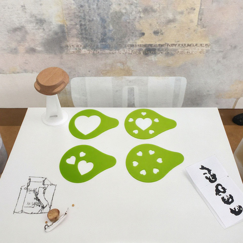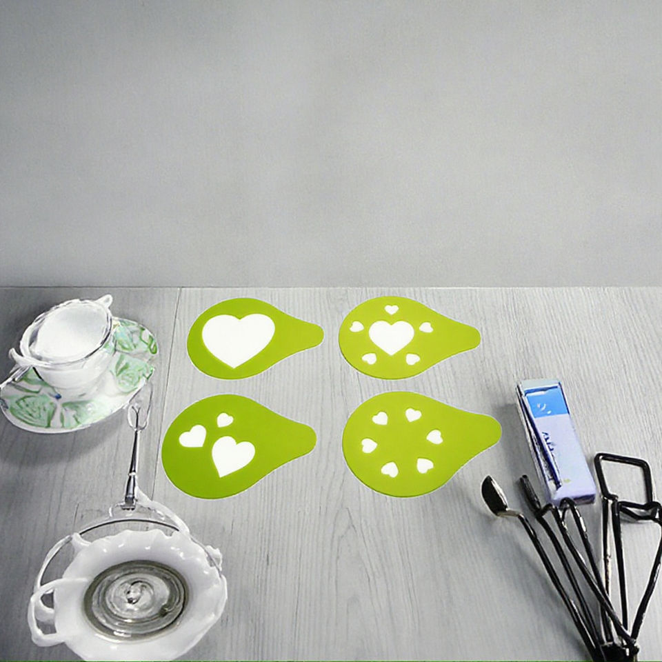 ชุดลายฉลุพลาสติกสำหรับกาแฟ4ชิ้นรูปทรงหัวใจยอดนิยม UJ-KT450