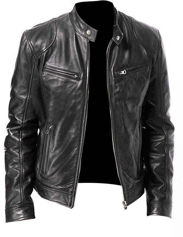 แจ็กเก็ตนักขี่จักรยานแท้เข้ารูปลำลองหนังสีน้ำตาลดำแนววินเทจของ UK มีหลายสี