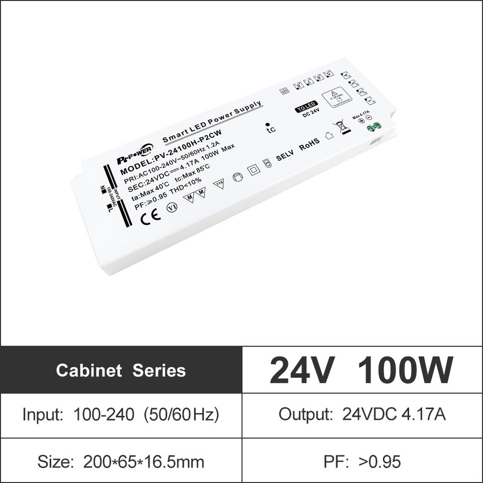 100W CE/CB/FCC/RoHS Listed Single Output Cabinet LED Driver 100-240VAC-DC 12V 24V IP20 Constant Voltage PF>0.95 LED Power Supply