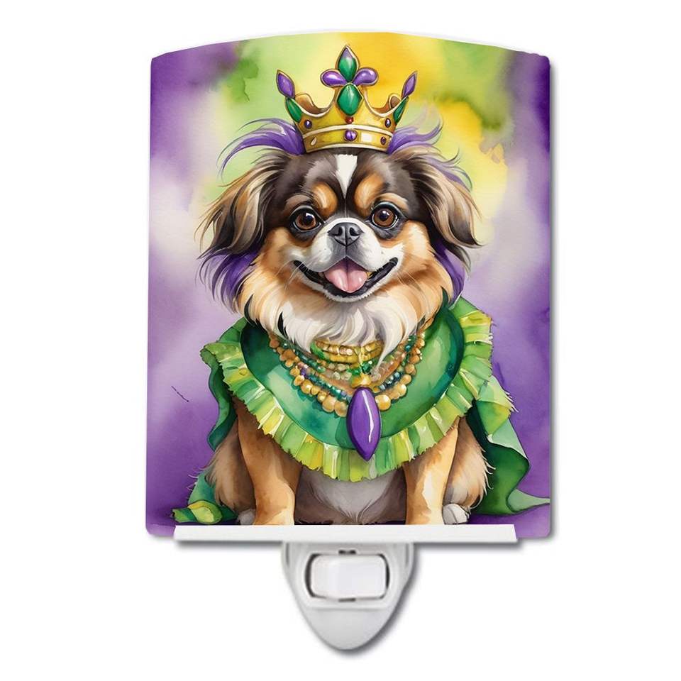 UL-Certified New Tibetan Spaniel King Mardi Gras Ceramic Night Light Compact 6x4x3 Multicolor for Bedroom Hallway Kitchen