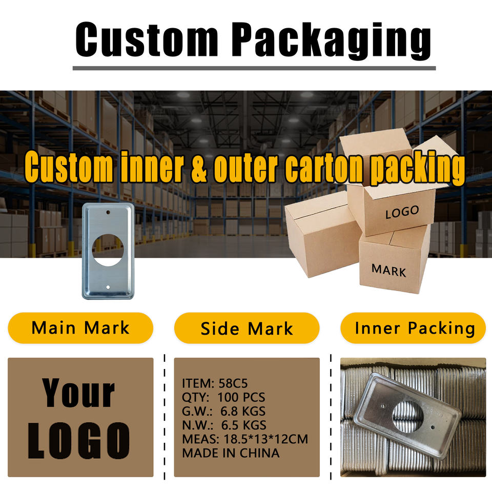 UL514A ฝาโลหะสี่เหลี่ยมขนาด4x2นิ้วรู35มม. สำหรับเต้าเสียบแผ่นผนังช่องเดียวฝาครอบ1.40"