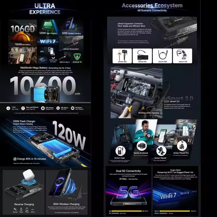 ULEFONE ARMOR 28 Ultra Thermal หน้าจอ 6.67 นิ้ว แบตเตอรี่ 10600mAh สมาร์ทโฟน 5G ระบบปฏิบัติการ Android โทรศัพท์มือถือที่ทนทานมาตรฐาน IP68 รองรับภาษาฝรั่งเศสและสเปน รองรับเครือข่าย LTE
