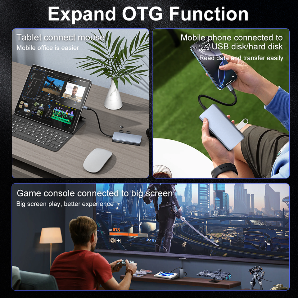USB Type C+PD+HDMI+USB A 2.0*2+USB A 3.0+SD/TF+RJ45 ยูเอสบี ไทป์ซี+พีดี+เอชดีเอ็มไอ+ยูเอสบี เอ 2.0*2+ยูเอสบี เอ 3.0+เอสดี/ทีเอฟ+อาร์เจ45
