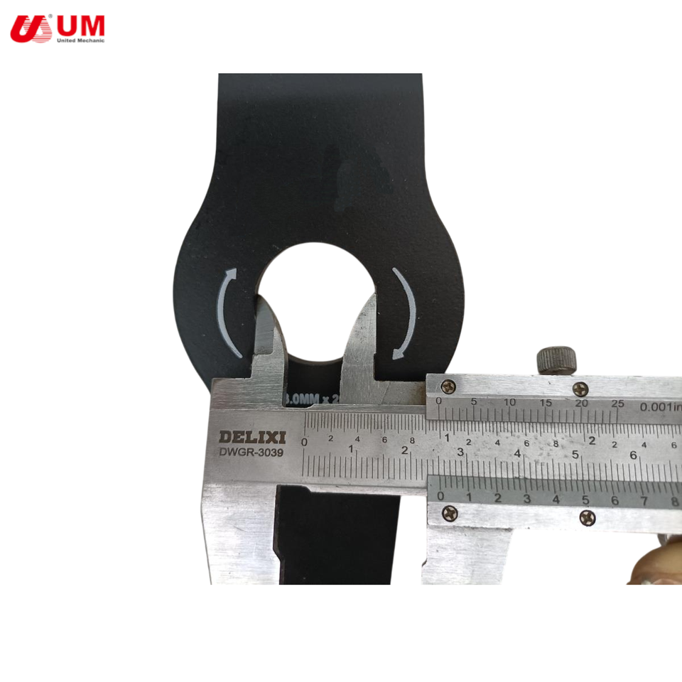 ใบมีดตัดหญ้าแบบโค้งรูปตัว S ขนาด 20 มม. รุ่น UM 2T ทำจากเหล็กแมงกานีส ใช้กับเครื่องตัดหญ้าแบบโรตารี่ที่ใช้เชื้อเพลิงเบนซิน อะไหล่เครื่องตัดหญ้า