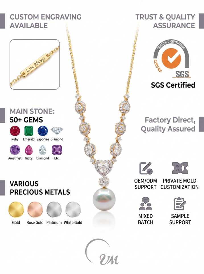 สร้อยคอ UM Jewelry ชุบทอง 18K ประดับเพชรแท้และมุก สำหรับทุกเพศ เหมาะสำหรับใส่ทุกวัน งานรำลึก งานแต่งงาน ชุดเซ็ตขายส่ง วันวาเลนไทน์