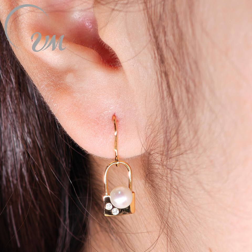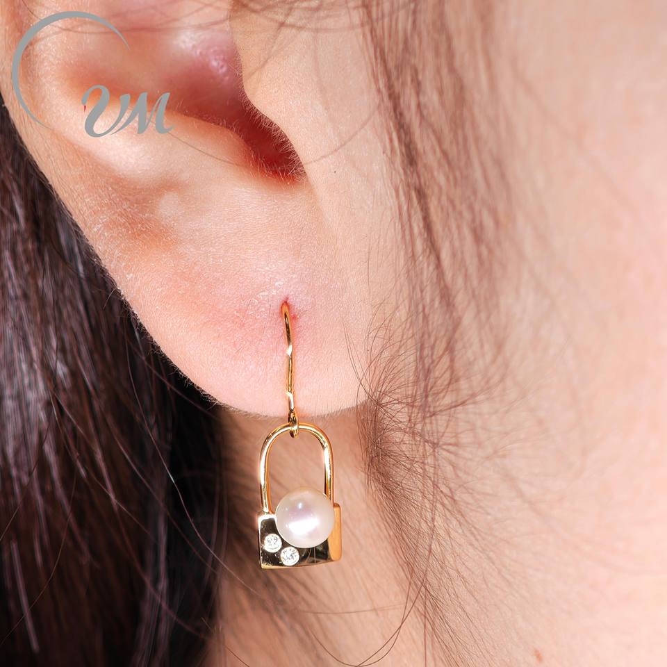 ต่างหูทองคำแท้ 18K/เงินแท้ 925 ประดับเพชรโมอิสซาไนต์ ดีไซน์ล็อค สำหรับผู้หญิง เหมาะสำหรับงานปาร์ตี้ งานครบรอบ งานแต่งงาน หรือใช้ในชีวิตประจำวัน