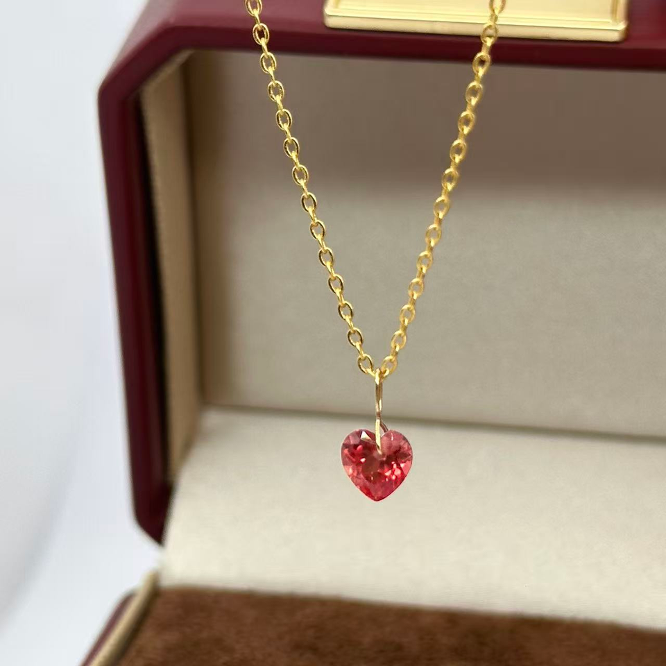UM เครื่องประดับทอง18K จี้ทับทิม paradscha (โซ่เงิน) สำหรับทุกเพศ/ชาย/หญิงงานหมั้นครบรอบสวมใส่ประจำวัน