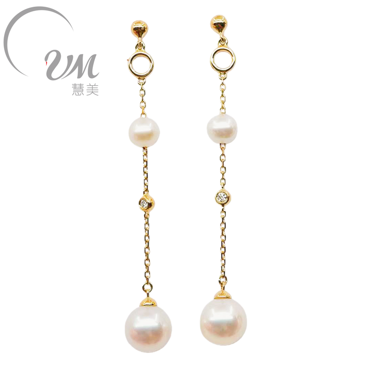 UM เครื่องประดับ18K ต่างหูทองคำแท้พร้อมไข่มุกน้ำจืดและเพชร-ของขวัญครบรอบแต่งงาน unisex