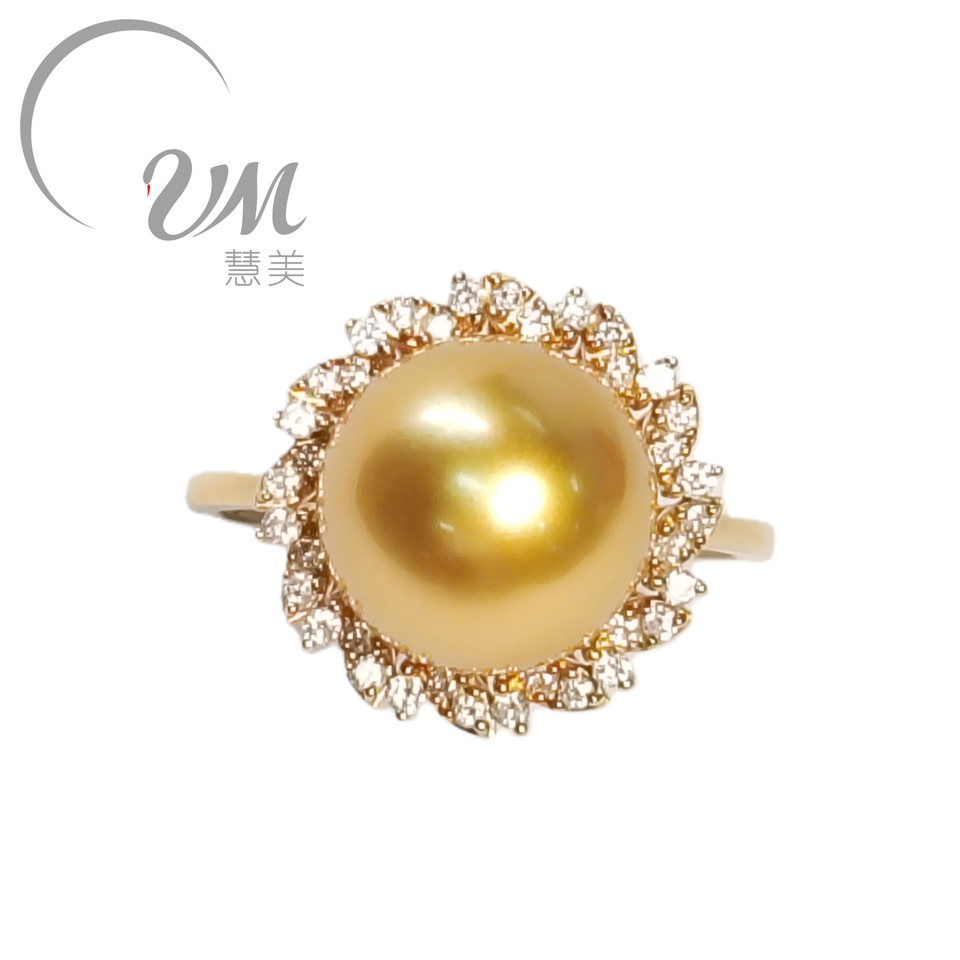 แหวนทองคำแท้18K ประดับมุกน้ำทะเล10.0มม. รูปดอกไม้ประดับด้วยง่ามของขวัญวันครบรอบแต่งงานประจำวันของผู้หญิง