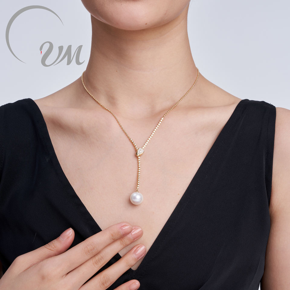 เครื่องประดับ UM จี้ทองคำแท้ 18K พร้อมสร้อยคอ ประดับเพชรธรรมชาติและไข่มุกน้ำจืด ของขวัญสำหรับงานหมั้น งานแต่งงาน และวันครบรอบ