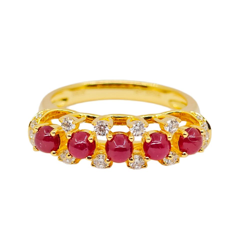 แหวนเงินแท้ 925 ประดับทับทิมและเพทาย ชุบทอง 18K เหมาะสำหรับทั้งชายและหญิง สวมใส่ได้ทุกวัน ของขวัญวันครบรอบแต่งงาน ของขวัญสำหรับงานปาร์ตี้