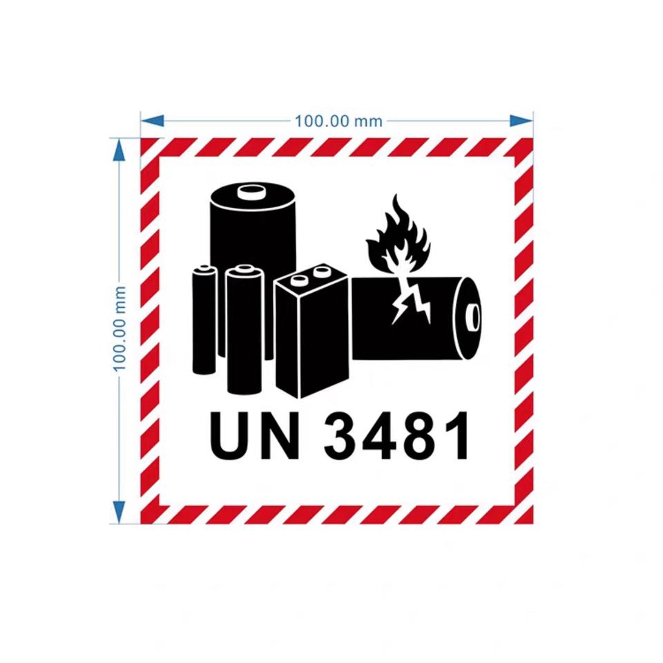 UN3481 UN3480 UN3090 UN3091ป้ายกาวกันน้ำฉลากเตือนแบตเตอรี่ลิเธียมไอออนที่กำหนดรูปร่างสี CMYK