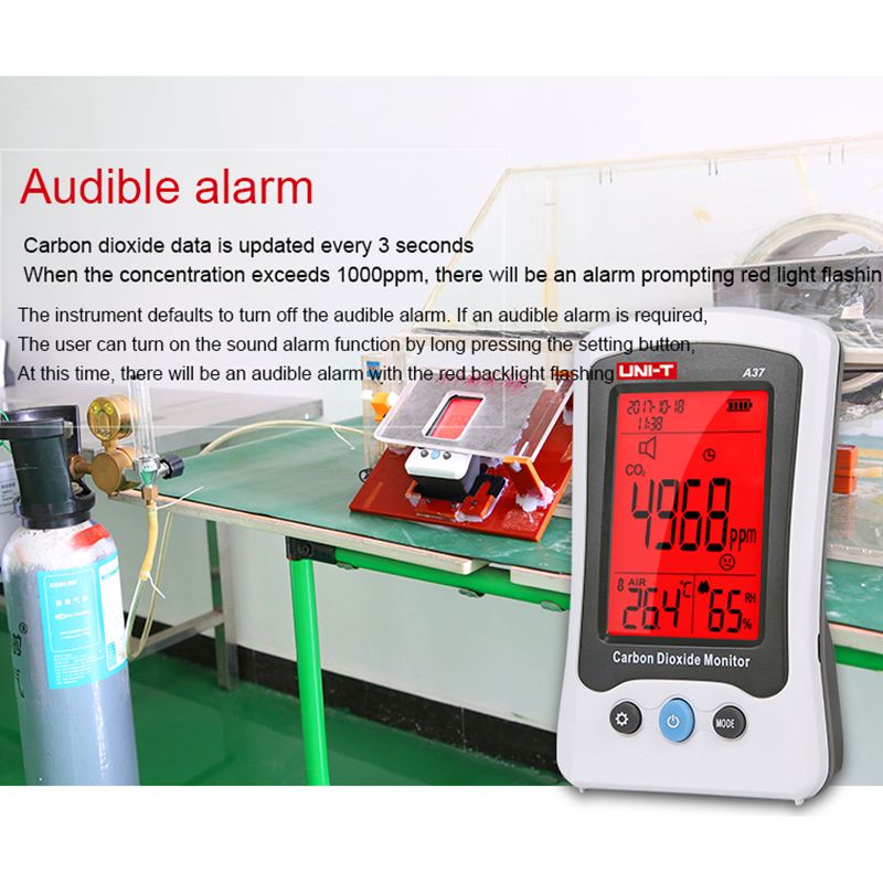 เครื่องตรวจจับคาร์บอนไดออกไซด์ดิจิตอลตรวจสอบคุณภาพอากาศที่ A37 UNI-T เครื่องตรวจจับก๊าซคาร์บอนไดออกไซด์400ppm ~ 5000ppm CO2มิเตอร์เซ็นเซอร์ตรวจจับ ndir หลักการ Co2 L55