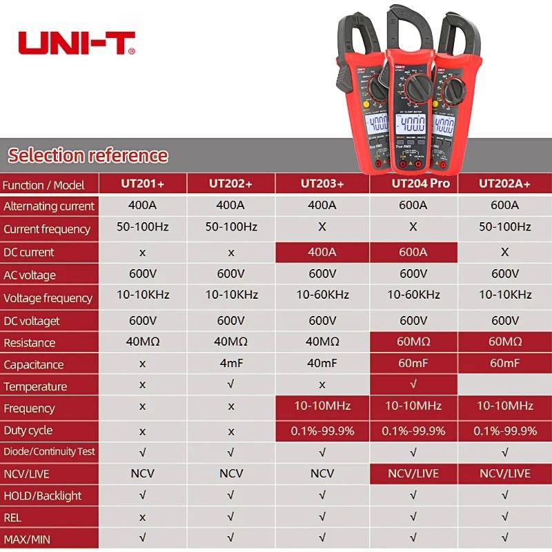 UNI-T มัลติมิเตอร์แบบ True RMS ความแม่นยำสูง เครื่องทดสอบแรงดันไฟฟ้าแบบดิจิตอล LCD รุ่น UT200 ซีรีส์ 200V/600V 600V