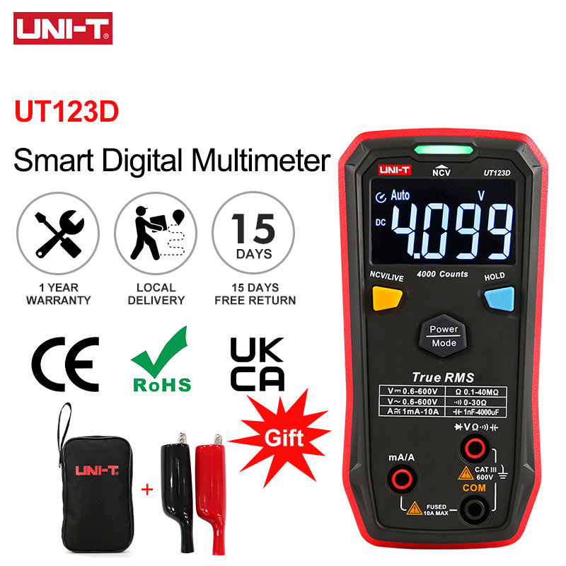 เครื่องวัดกระแสไฟฟ้าดิจิทัลอัจฉริยะ, เครื่องวัดกระแสไฟฟ้า DC AC เครื่องทดสอบความต้านทาน UT123D UNI-T L65ทดสอบไดโอดแบบสด
