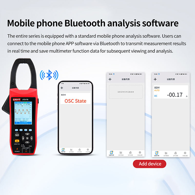 แคลมป์มิเตอร์ UT217B UNI-T UT217A ได้แคลมป์มิเตอร์ออสซิลโลสโคป AC DC ปัจจุบันปัจจุบันมัลติมิเตอร์ดิจิตอล NCV ฟังก์ชันบลูทูธ L81แบนด์วิดท์อนาล็อก