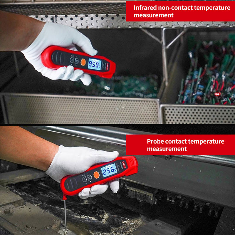 เครื่องวัดอุณหภูมิอินฟราเรดแบบ2-in-1 UT320T UNI-T เครื่องวัดอุณหภูมิเครื่องวัดอุณหภูมิแบบดิจิตอลการวัดโพรบ-40 ℃ ~ 300 ℃ L54