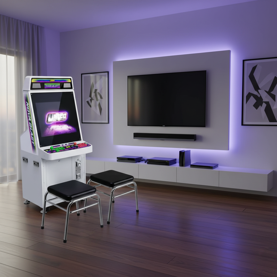 เครื่องเกมอาร์เคดย้อนยุค UNICO Nova Blast Deluxe ขนาด 26 นิ้ว พร้อมจอ LCD ปุ่ม Sanwa ช่องต่อ Jamma รองรับการเชื่อมต่อหลายปลั๊ก