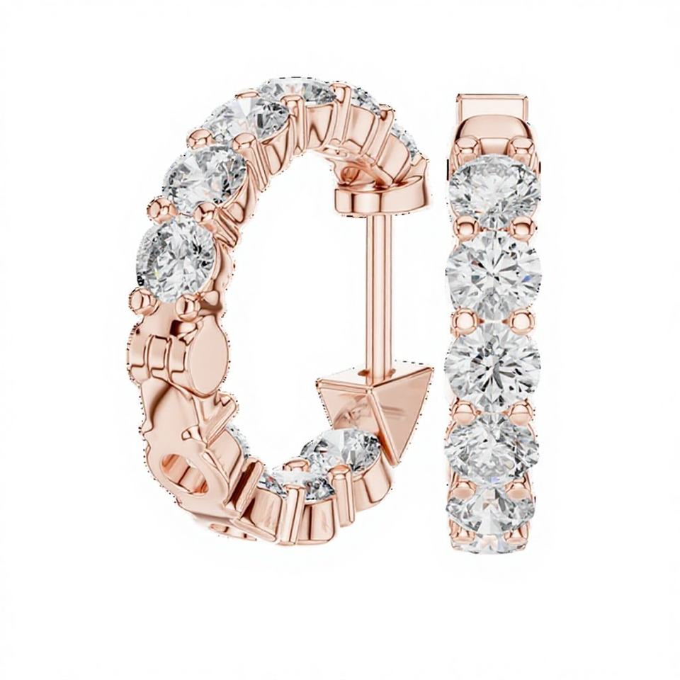 ต่างหูเพชรทรงห่วงเพาะเลี้ยงในห้องปฏิบัติการ ดีไซน์พิเศษ ชุบทองคำขาว 18KT โรสโกลด์ พร้อมใบรับรอง IGI เหมาะสำหรับใส่ทุกวัน งานพิเศษ และวันวาเลนไทน์